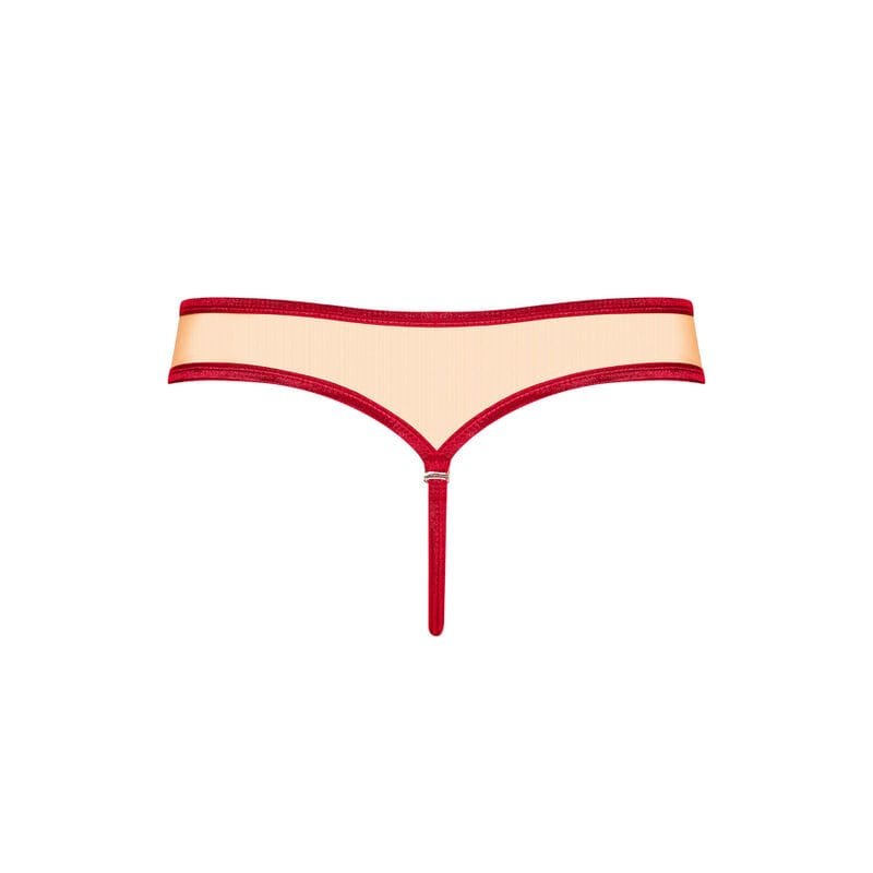 ¿Tanga hecho de una combinación excepcionalmente sofisticada de materiales? El modelo Rubinesa es de satén increíblemente delicado y un corte excepcionalmente sexy, pero aparentemente clásico, ¡no mantuvimos nuestra fantasía bajo control! El rojo digno del pecado forma un arco encantador, y combinado con el colgante brillante, le hará entender que comenzarán las pre-vacaciones en el dormitorio. ¡Solo sabemos que no puedes esperar!